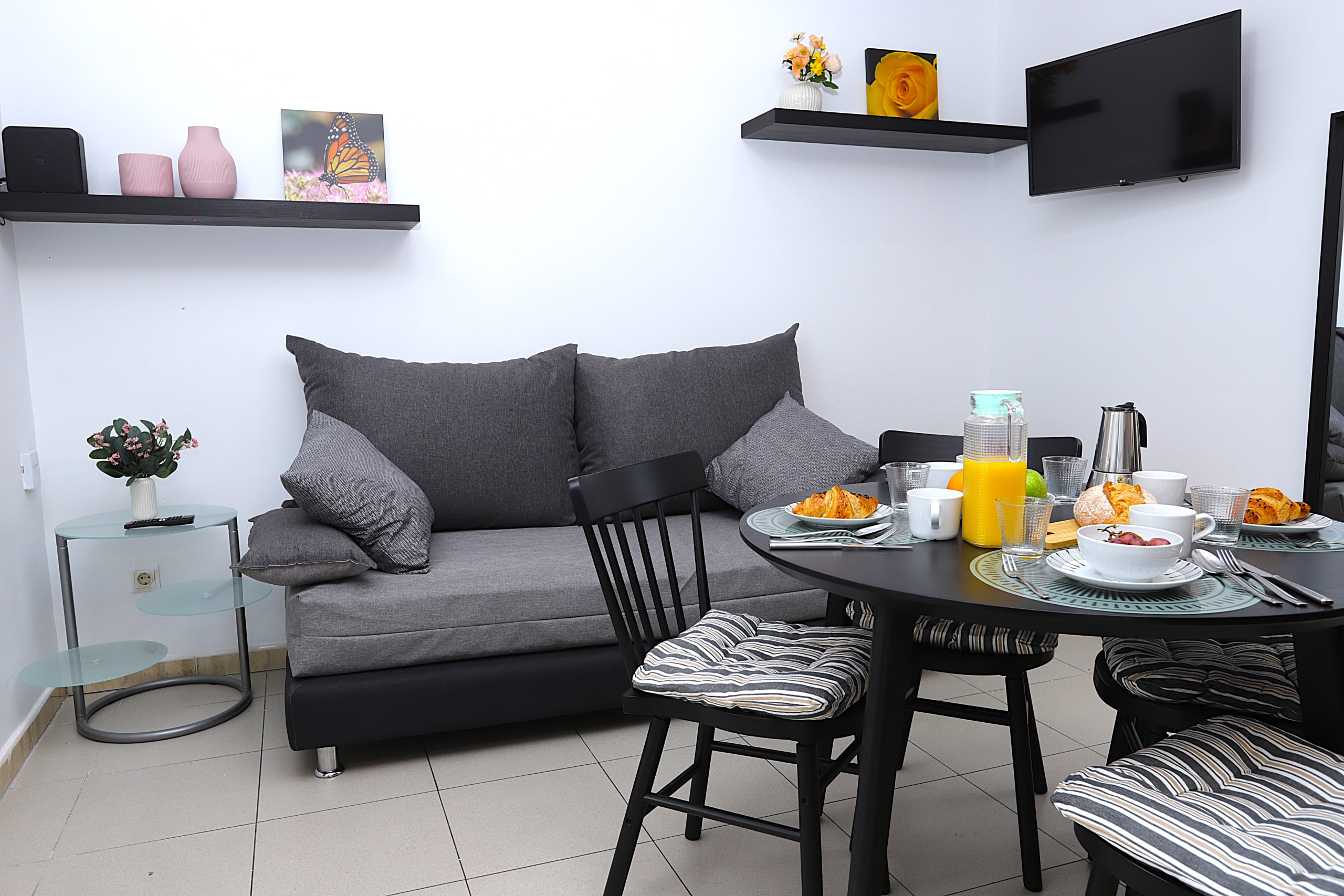 The accommodation is equipped with the following items: 25 m² terrace, washing machine, iron, internet (Wi-Fi), hair dryer, balcony, heat pump, air conditioning in the living room, 1 TV.